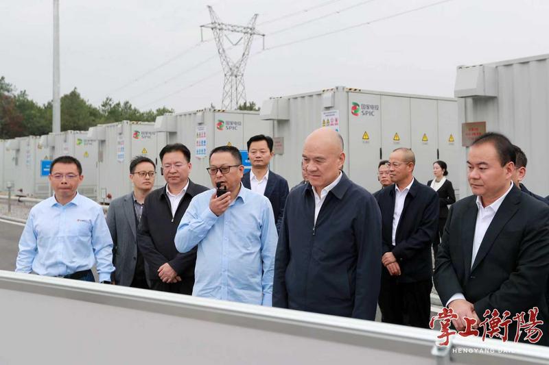 ▲10月28日下午,刘越高、朱健率队来到祁东县白地市储能项目实地观摩。